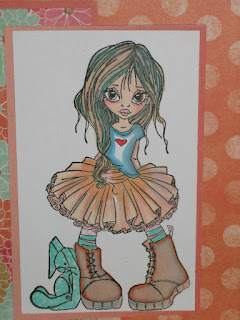 Coloured the image in with promarker pens. Different colour hair more experimenting. Used lots of different die cuts as well. Bit of distressing on the tag to finish off as well.